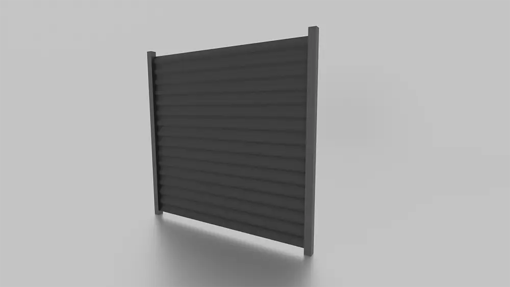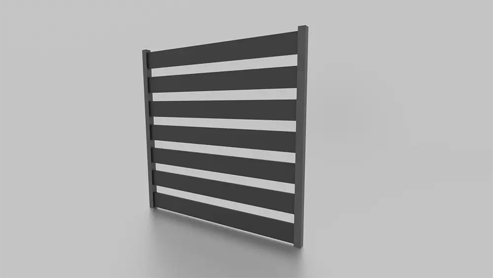 Panel produkowany na bazie stalowego, giętego profilu. Szerokie lamele (10 cm) zapewniają niewielkie prześwity oraz kontakt wzrokowy z otoczeniem.